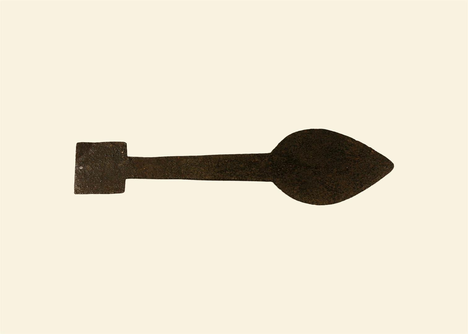 Candeia em processo de elaboração, em ferro, encontrando-se realizado apenas o recorte da chapa.
