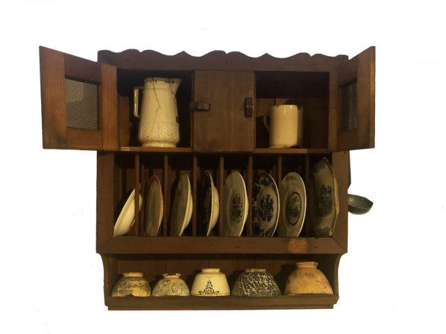 Louceiro em madeira utilizado para guardar utensilios de cozinha.